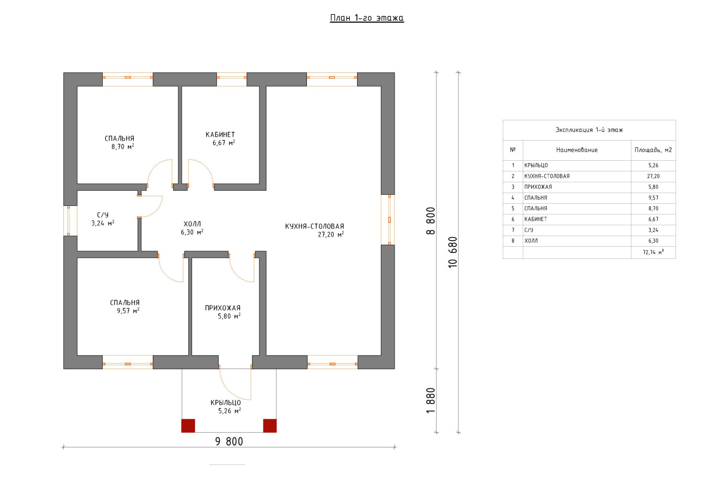 Материал стен на выбор: Газобетон, кирпич, керамика.